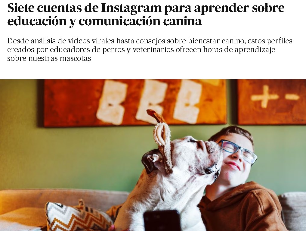 En su artículo Siete cuentas de Instagram para aprender sobre educación y comunicación canina, aparecemos junto a compañeras tan especiales como PAT Educadora Canina o Sr. Perro. Es un pequeño empujoncito que nos da fuerzas para seguir en esta línea de divulgación responsable.